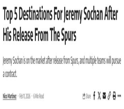 馬刺裁掉9號秀!索漢5大下家候選出爐:湖人壓哨入選太陽(yáng)高居第一